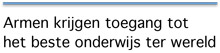 Nee, Friedman heeft het bijvoorbeeld over ontwikkelingshulp. Hij ziet dat zo voor zich: Voor relatief weinig geld huurt de Amerikaanse overheid een gebouw in Cairo, installeert er enkele tientallen computers, zorgt voor een supersnelle internetverbinding, huurt een lokale leerkracht in voor de begeleiding en nodigt geïnteresseerde Egyptenaren uit om online in het Arabisch ondertitelde cursussen te volgen bij de beste hoogleraren in de wereld.