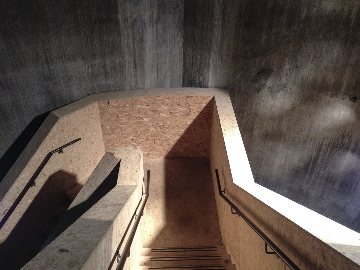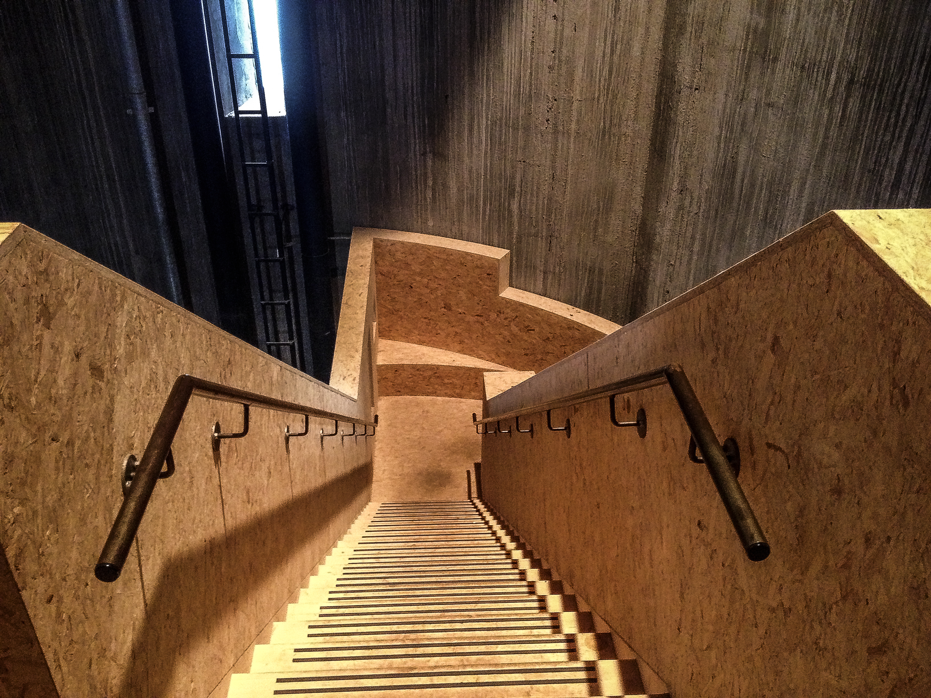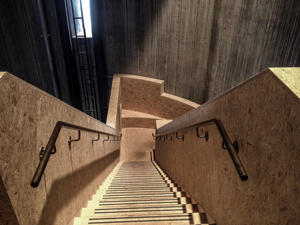 In de watertoren van St Jansklooster heeft beheerder Natuurmonumenten de oude smalle trap buiten bedrijf gesteld en met geperste houtplaten een nieuwe opgang gebouwd. Het resultaat is prachtig. © blueice|bertwestenbrink – camera: iPhone