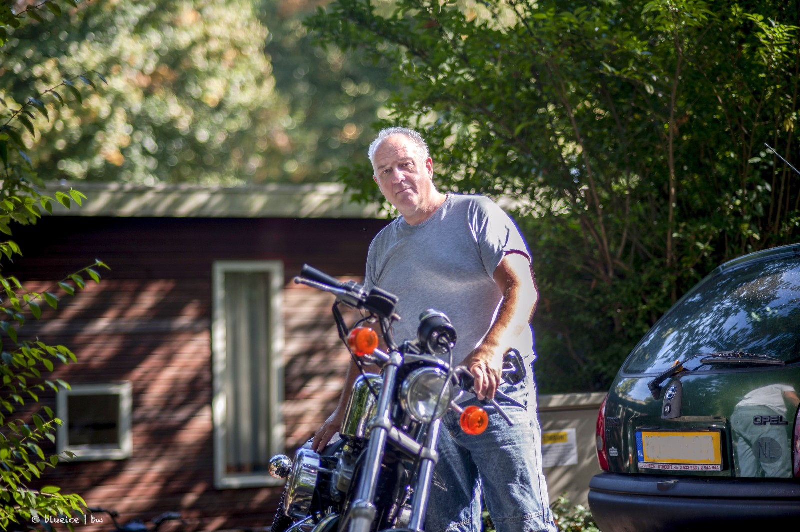 Resultaat van een uur ‘portretten’ maken in Oog en Al (Utrecht). Opdracht (cursus) was: maak een portret met onscherpe voor- en achtergrond. Daar is niet zoveel van terecht gekomen. Door de opdracht kwam je al gauw op afstand te staan en werd het lastig om een portret te maken. Man met pet heeft onscherpe voor- en achtergrond. Man met Harley ook (een ietsje). De overige vier niet. Nou, niet echt. Of echt niet. | september 2016