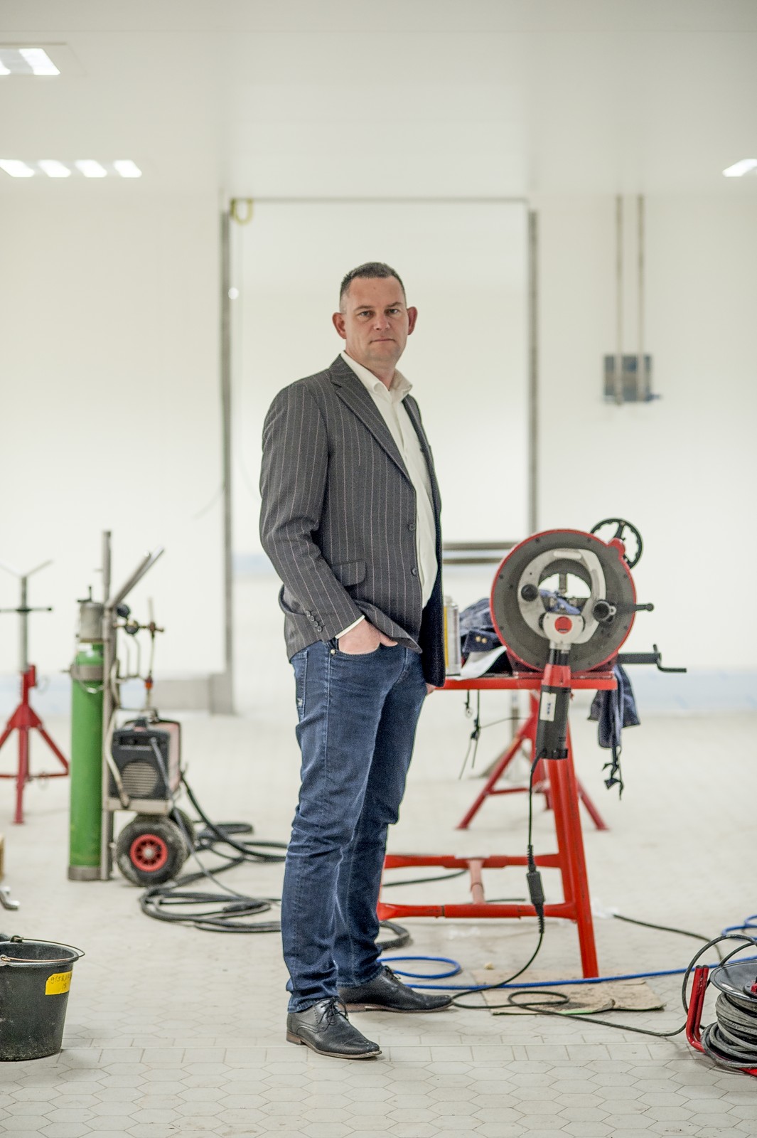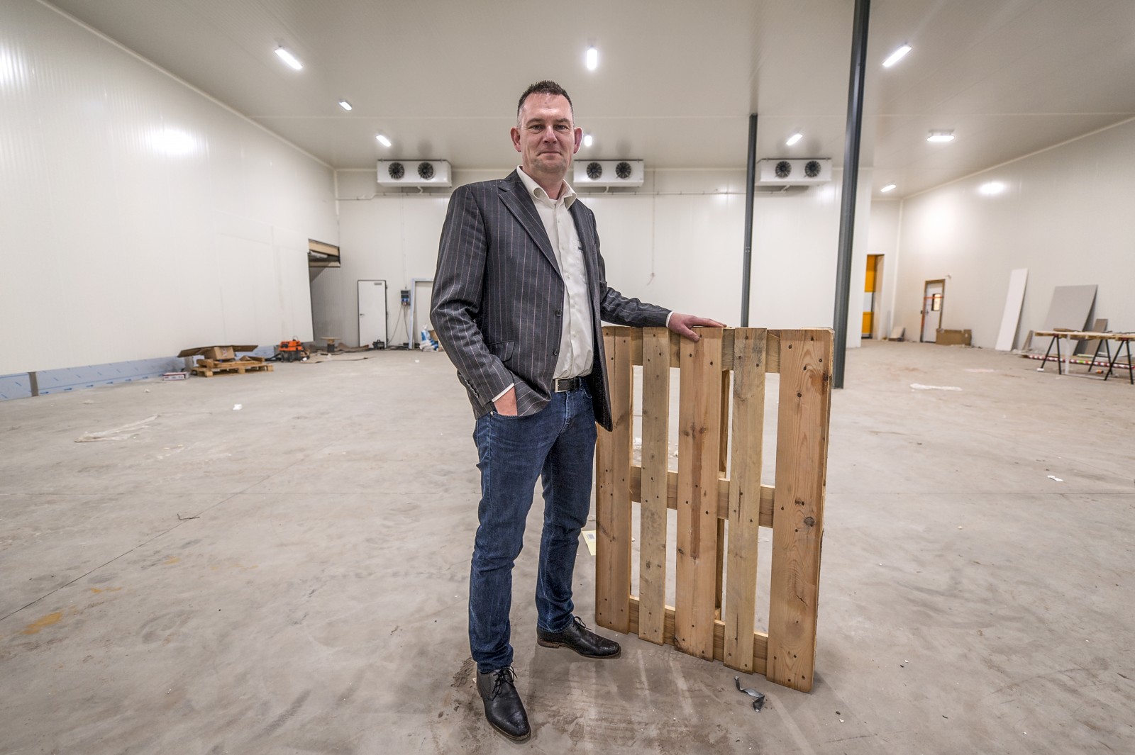 Vestigingsmanager Erno van der Weijden van het kaasopwaarderingsbedrijf Kruiveem staat in een bedrijfsruimte van zijn nieuwe bedrijf. Er wordt nog volop gewerkt aan de inrichting. Kruiveem verhuist in januari van Tolbert naar Hoogeveen. In de fabriek worden kazen met een foutje verwerkt tot nieuwe producten zoals plakken, rasp, smelt- of poederkaas. | november 2015